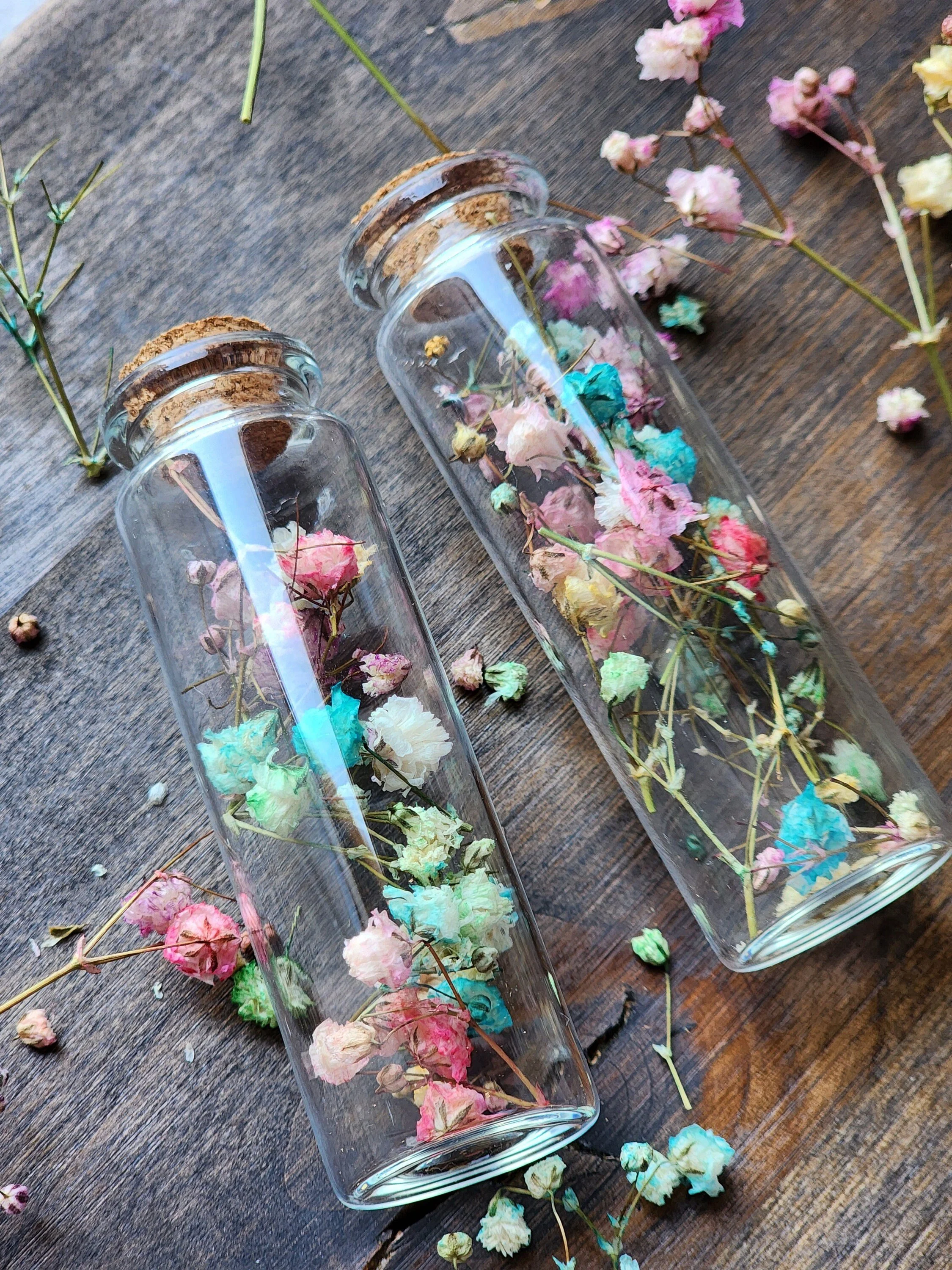 Fairy breath trinket jar, boho party favors, dried flower decor, bridesmaid proposal gift