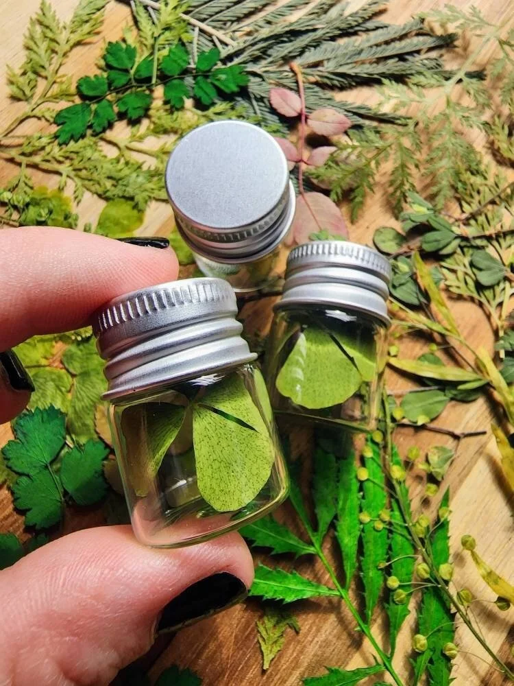 Shop › Lucky charm, jar of luck, four leaf clover Image 1 of 7 Image 2 of 7 Image 3 of 7 Image 4 of 7 Image 5 of 7 Image 6 of 7 Image 7 of 7 Lucky charm, jar of luck, four leaf clover $9.99 ☘️ This is a real pressed four leaf clover in a glass jar 💚Each jar of luck comes individually wrapped in a gift box topped with a decorative seal. Add To Cart Added! ☘️ This is a real pressed four leaf clover in a glass jar 💚Each jar of luck comes individually wrapped in a gift box topped with a decorative seal.